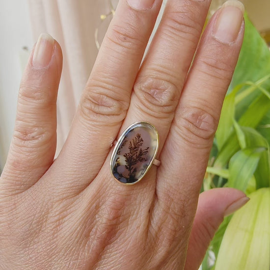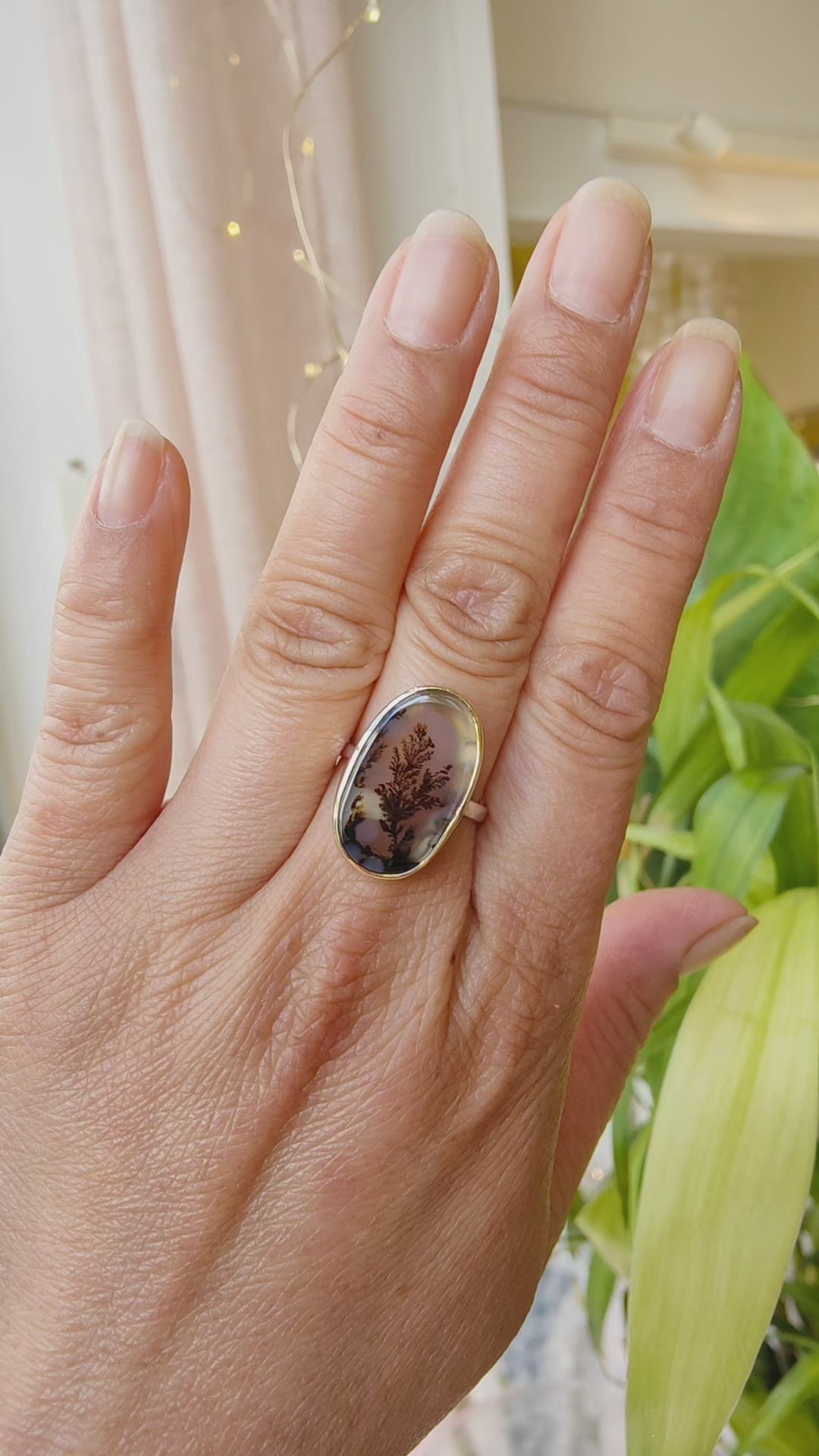 Cette magnifique bague est montée avec une Agate dendritique, provenant du Brésil.