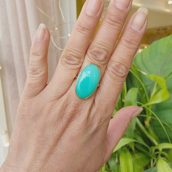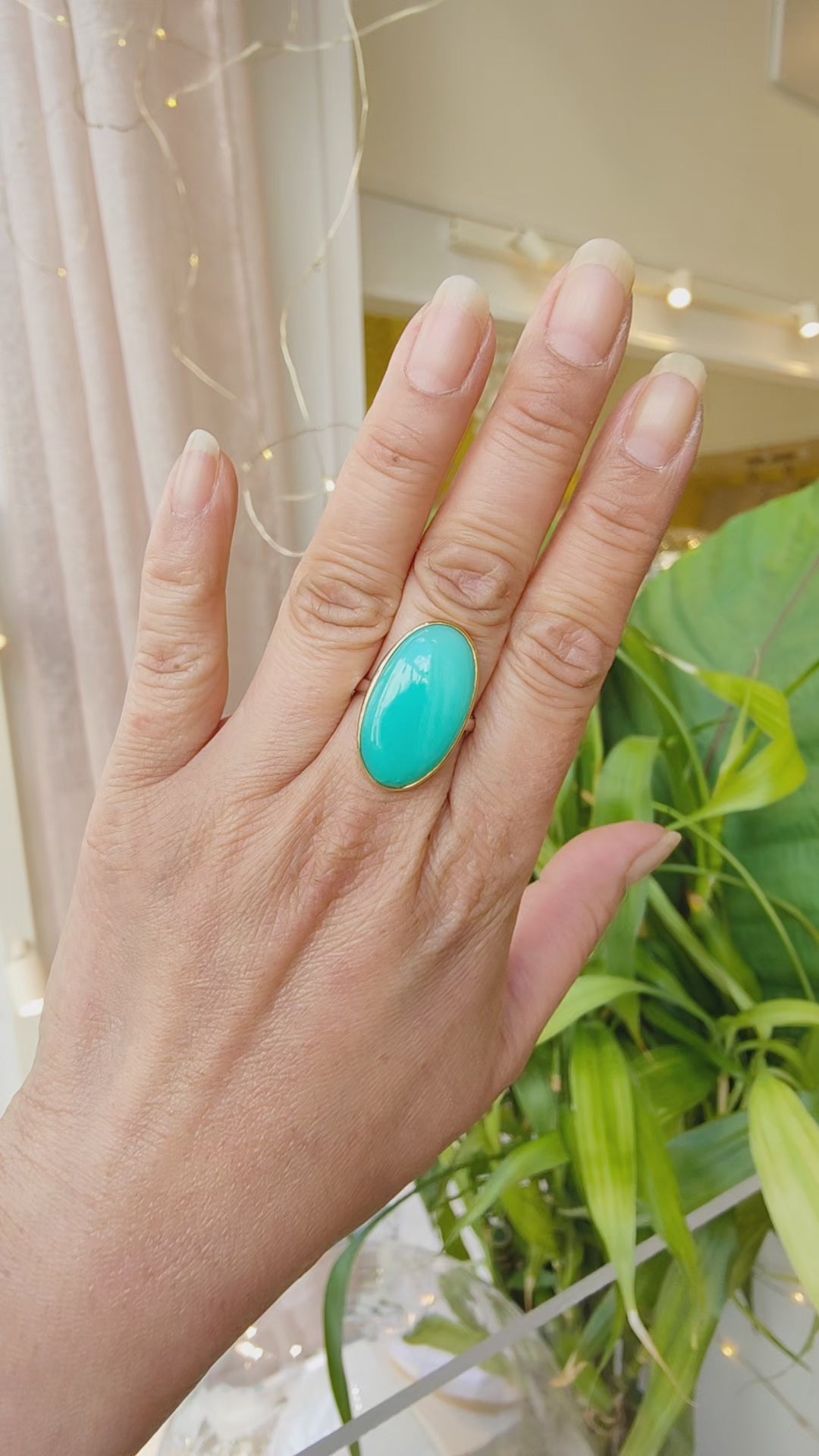 Cette magnifique bague est montée avec un Chrysoprase, provenant d' Australie
