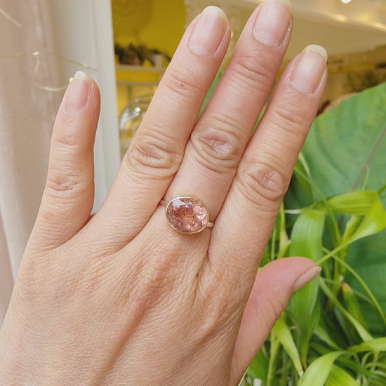 Cette magnifique bague est montée avec un Quartz fraise provenant du Brésil.