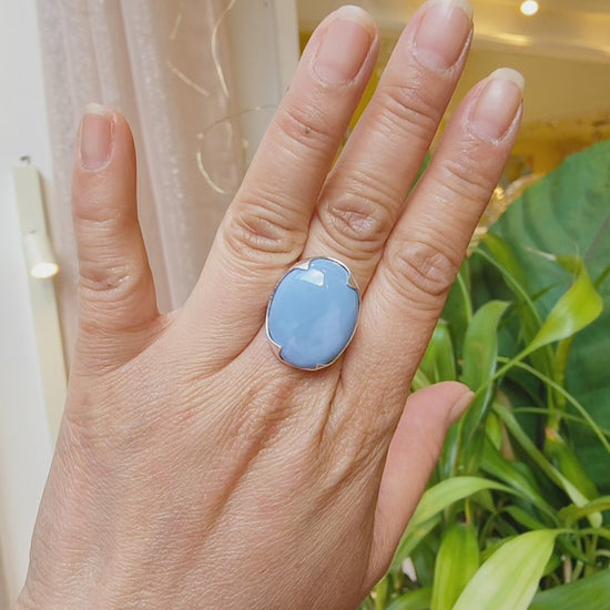 Plongez dans l'océan de tranquillité avec notre bague en opale bleue du Pérou,