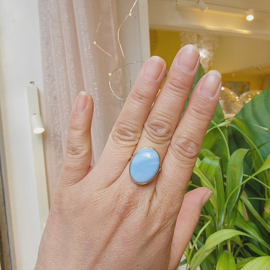 Plongez dans l'océan de tranquillité avec notre bague en opale bleue du Pérou,