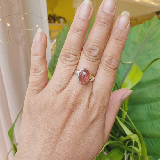 Éblouissez votre quotidien avec notre bague en quartz fraise, une gemme rare mêlant la clarté du quartz aux inclusions de lépidocrocite et d'hématite.