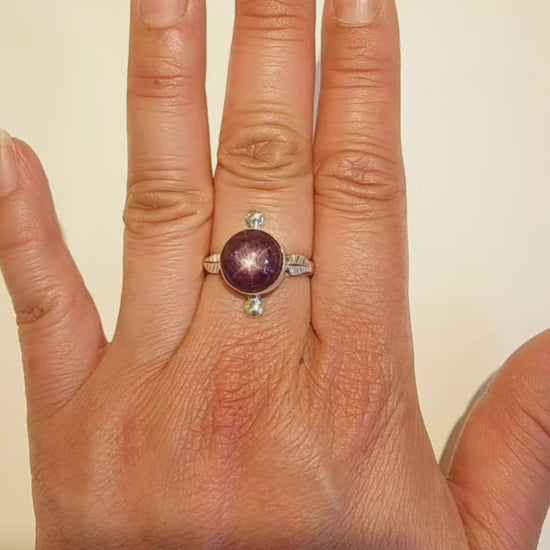 Cette magnifique bague est montée avec un Rubis étoilé du Sri Lanka.
