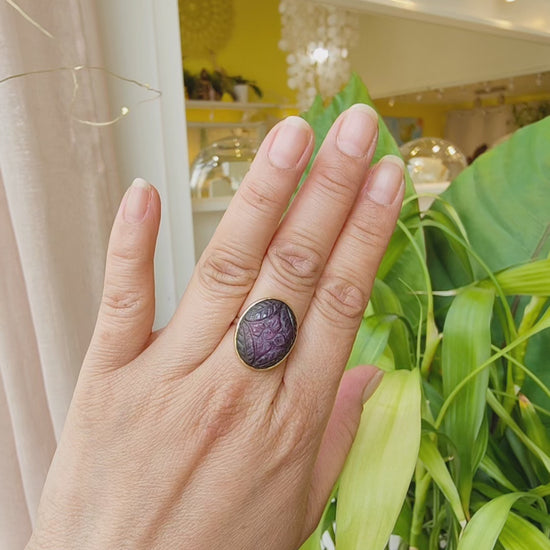 Les rubis gravés à la main sont des joyaux d'exception, où chaque motif sculpté reflète un savoir-faire artisanal unique. Chaque détail ciselé sur cette pierre précieuse, donne naissance à une pièce personnelle et singulière.